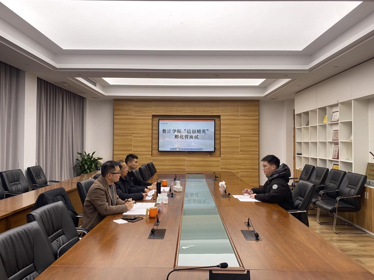12月4日晚,3003新葡平台登录入口举行“信创精英”孵化营学院面试。原临安区经信局局长汪其顺、中国人民银行临安支行行长陈梁、每果时光有限公司董事长何晓天担任面试官。