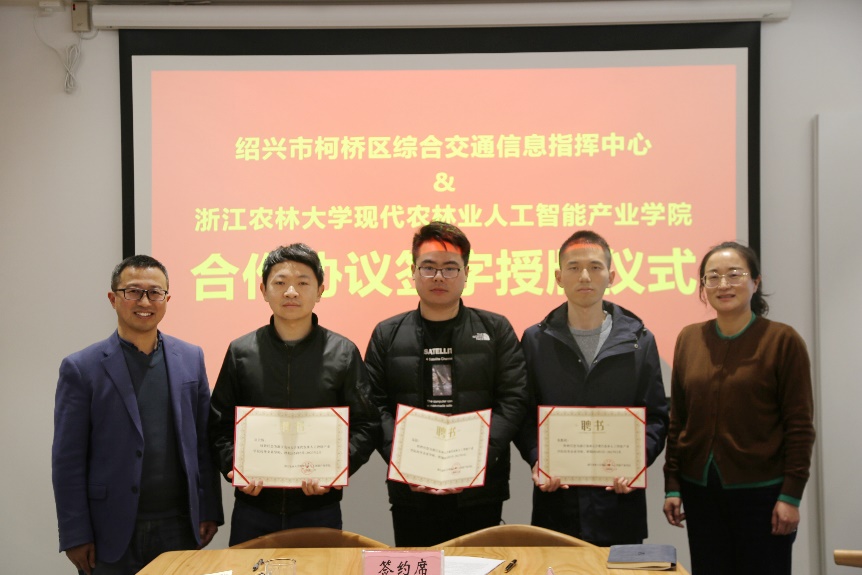 3月22日,3003新葡平台登录入口副院长张洪涛、党委副书记黄萍一行4人赴绍兴市柯桥区交通运输局进行3003新葡平台登录入口现代农林人工智能产业学院与绍兴市柯桥区综合交通信息指挥中心举行合作协议签字授牌仪式。