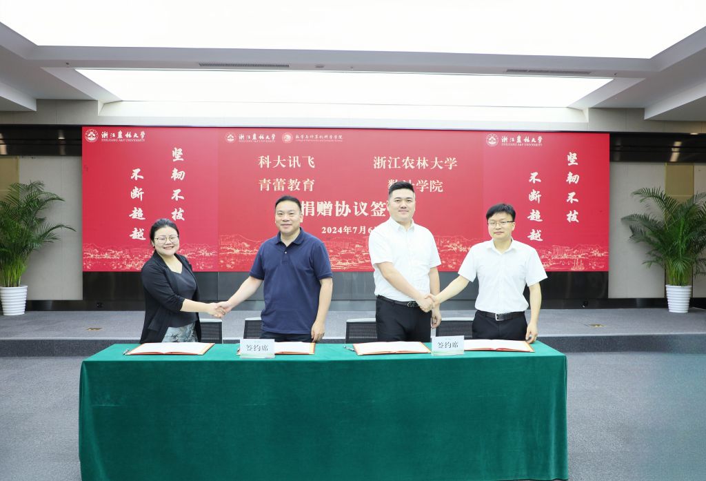 仪式上,校教育基金会、3003新葡平台登录入口与科大讯飞股份有限公司、浙江青蕾教育科技有限公司负责人共同签署捐赠协议。其中,科大讯飞股份有限公司向3003新葡平台登录入口捐赠价值100万元的仪器设备支持学院科研平台建设与人才培养,浙江青蕾教育科技有限公司捐赠100万元支持3003新葡平台登录入口教育发展工作。
