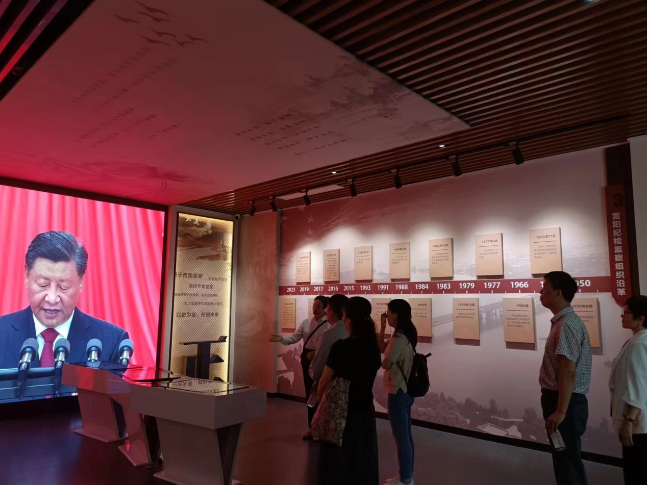 龙门古镇是孙权后裔孙氏家族聚居地,作为浙江省廉政文化教育基地,承载着丰富的历史文化遗产和深厚的廉洁文化底蕴。富阳区廉政警示教育馆的廉政讲解员从“不忘初心,牢记使命”;“以案为鉴,警钟长鸣”;“清正廉洁,永葆本色”三个篇章进行现场解说。通过图文、影像、模拟场景等观展体验,党员们了解了多个违法违纪典型案例,让在场的每一位党员得到心灵上的警醒和震撼。