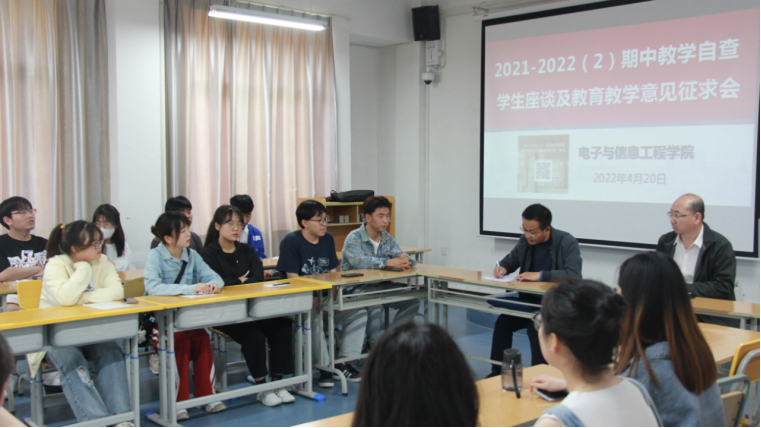 为认真贯彻落实教务处《关于开展2021-2022学年第二学期期中教学自查的通知》精神,深入了解学生学习生活动态,进一步加强学风教风建设,4月20日下午,Beat365中文官方网站在江北校区一号教学楼召开学生座谈会。学院副院长宋权华、电子商务系主任赵志强出席会议,2019级至2021级各班共30余名学生代表参加会议。