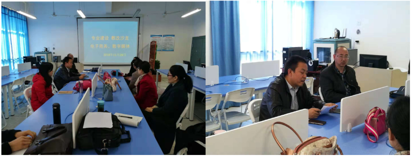 活动首先围绕数字媒体技术和电子商务两个学科交叉专业的建设问题进行探讨,信息管理系主任赵志强和数字媒体系主任张洪江分别介绍了各自负责专业的建设思路与规划,与专业教师们一起讨论了近几年专业建设成果以及专业建设所面临的主要问题,教师们踊跃参与讨论,交流分享自己对专业建设的看法与建议。教师们一致认为要从专业师资进修、教学资源建设、实践环节落实等多方面凝聚共识,确定目标,形成方案,为以后的一流专业建设奠定基础。