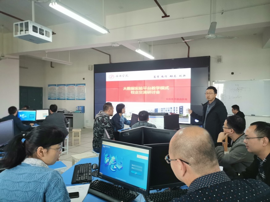 2020年10月21日下午,计算机科学与技术系在逸夫科技楼A501实验室举行了实验课程教学平台建设及教学方法探讨为主题的实验教学课改沙龙活动。本次活动邀请南京云创大数据科技有限公司卞保磊工程师主讲,Beat365中文官方网站副院长王克刚教授以及计算机专业全体教师参加了活动。