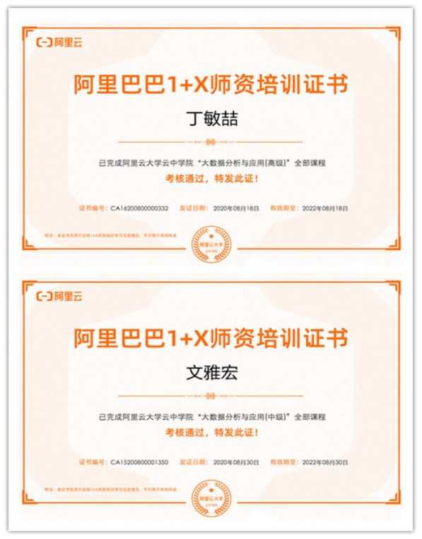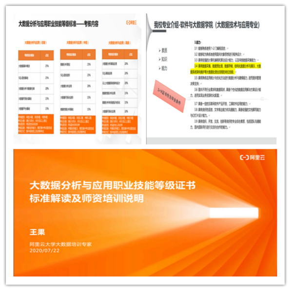 为推动“大数据分析与应用”1+X职业技能等级证书试点工作的落实执行,做好技能认证师资队伍建设,2020年7月22日至8月31日,我院14位教师参加了师资培训。本次培训由阿里巴巴主办,因受疫情影响,培训以在线直播和线上阿里云大学云中学院学习的形式展开。