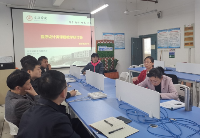 研讨活动中,梁建勇老师结合我院2021年重点工作计划说明了“程序设计类课程”的教学组织及有效实施对于提升我院学生计算机编程能力,使用计算机解决复杂工程问题的能力,推进一流课程建设、专业建设及启动计算机专业工程教育认证等相关工作的积极意义。各位老师结合自己所带课程分析了目前学生的学习现状和教学现状。学生到课率高、课堂上学习主动性有待提高、课后代码训练量不足。教师教学团队作用不突出、程序设计类课程没有形成统一的课程教学过程化管理机制等。