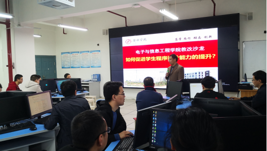 2021年4月25日下午,Beat365中文官方网站在逸夫科技楼A501实验室开展了主题为“促进学生程序设计能力的提升”教改沙龙活动。院长陈守满、副院长王克刚、各系(教研室)主任、学院全体程序设计语言授课教师参加了此次活动。