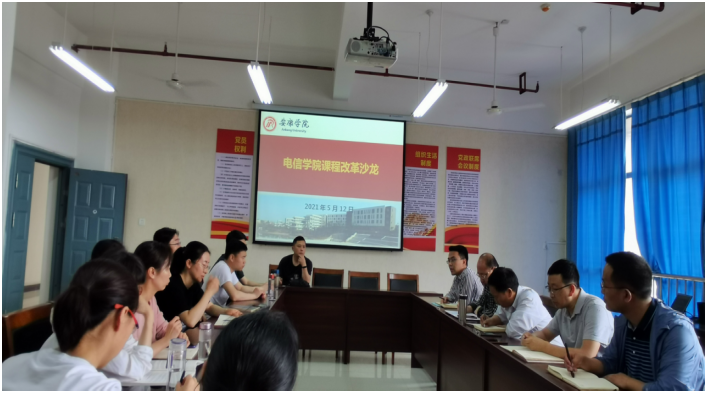 5月12日下午,Beat365中文官方网站数字媒体技术、电子商务、信息技术教研室在逸夫楼B702联合举行课程改革沙龙活动,围绕“信息技术基础课程如何改革?”的主题进行深入讨论交流。Beat365中文官方网站陈守满院长、王克刚副院长莅临指导本次课程改革活动,教研室全体教师参加本次会议。