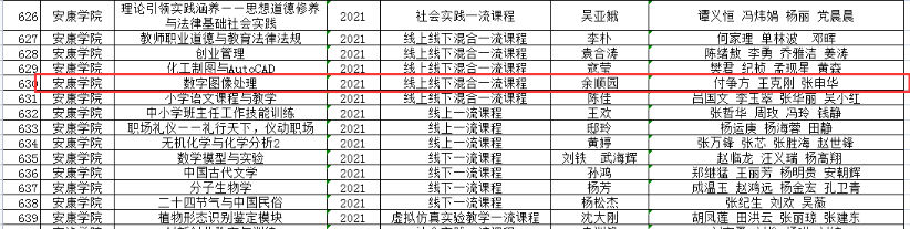 7月1日,陕西省教育厅发布了《关于公布2021年省级一流本科课程认定结果的通知》,我院《数字图像处理》课程获批线上线下混合一流课程。