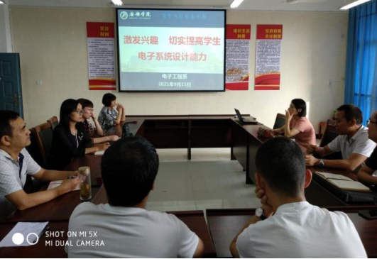 2021年9月15日下午,电子工程系召开了以“激发学习兴趣 切实提高学生电子系统设计能力”为主题的教学沙龙活动。会议主题围绕如何激发学生兴趣,提高学生电子系统设计能力进行研讨,会议由丁礼磊老师主持,电子工程系和物理系全体老师参加了本次会议。