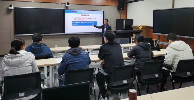 宋昌伟老师教学展示主题是Python中列表的使用。宋老师首先使用生活案例引出课题,针对问题提出了使用列表知识解决问题的思路,随后娴熟的讲解了列表的创建规则、使用注意事项以及应用场景和案例。