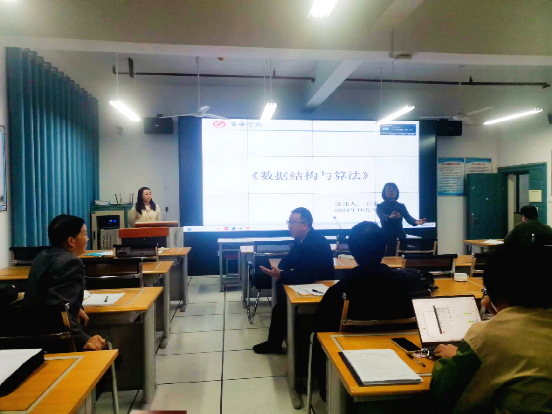 随后,活动进入了说课环节。各位教师围绕各自的课程进行了生动的说课展示。成典勤老师详细介绍了《数据结构与算法》课程目标、教学内容及教学方法。通过城市地铁案例的分析,展示了图结构在城市建设等领域的实际应用。赵超老师介绍了《数据仓库与数据挖掘》课程核心知识点与重难点分布。刘星亮老师从课程定位与目标、教材分析、课程内容、课程设计、课程实施、课程教学特色和考试考核办法七个方面全方位讲解了《大学信息技术基础》课程教学情况。随后,其他教师也纷纷亮出自己的课程亮点,讲解了各自的教学设计理念和实施策略。