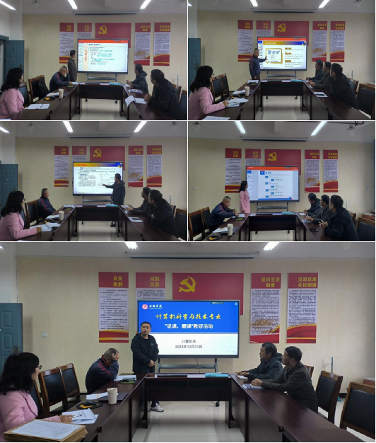 为深入推进课堂教学改革,提升应用型人才培养质量,2025年10月31日,计算机科学与技术专业全体专任教师在科技楼B702室举行了计算机专业教师磨课暨教学经验交流会。本次活动旨在为一线教师搭建一个展示、交流、共享的教学交流平台,通过“讲、研、改”一体化流程,深度聚焦课堂教学模式创新,共同探讨适应新时代需求的计算机专业课程教学模式。