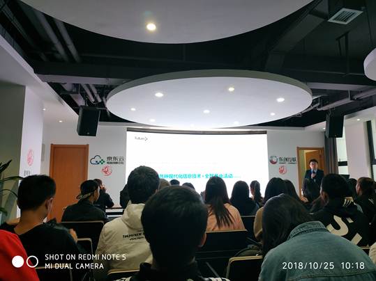 在创新园参观期间,同学们都表现出了极大的好奇心和专业学习的热情,积极地提出自己的问题与想法,与老师同学探讨交流。参观结束后,京东爱克斯未来学院高级讲师董皓云就电子商务专业未来的学习和就业方向为大家带来了一场精彩的报告,他幽默诙谐、生动有趣的讲解引起了同学们对电子商务平台设计的极大学习兴趣。