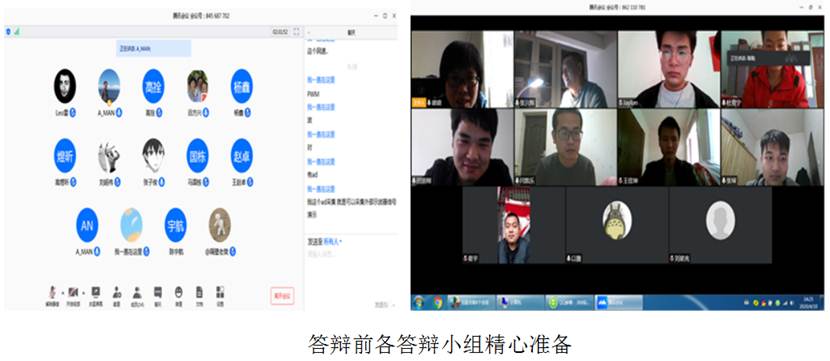 由于毕业设计中期检查由线下搬到线上进行,在答辩前,各答辩小组组长精心组织安排、提前测试线上答辩平台;在答辩过程中,学生从目前毕业设计系统进展情况以及遇到的问题、目前毕业设计论文撰写情况以及后期毕业设计安排三个方面进行汇报;答辩小组老师认真听取学生的汇报,并在系统分析设计、功能完善、论文撰写及组织等方面对学生进行了详细指导。