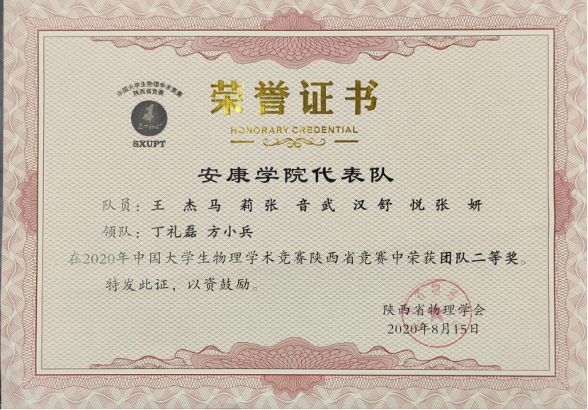 我院学生参加2020年中国大学生物理学术竞赛省赛并获佳绩