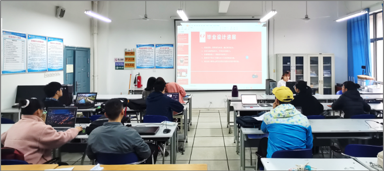 此次中期检查包括学生汇报、查看材料和作品、存在的问题与建议等环节,两个检查组详细了解学生毕业实习开展的情况,通过学生汇报和展示详细了解了学生毕业论文(设计)的进展情况,教师们对照任务书要求和学生完成的实际情况指出了毕业论文(设计)目前存在的问题、后续内容以及进一步完善的意见和建议。