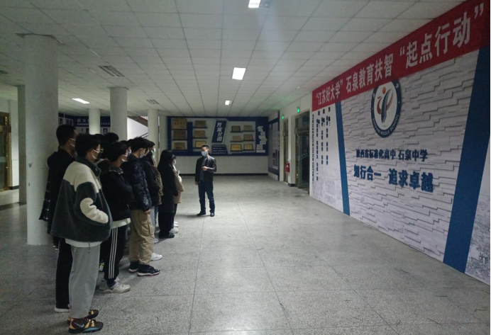 11月21日晚,石泉中学副校长戴尚勇老师带领全体学生参观了学校,详细介绍了学校的基本情况。随后,石泉中学副校长戴尚勇、陈平及相关指导老师和同学们召开了见面会,对本次的见习进行了详细安排,并明确了见习的内容和具体要求。会后,召开了学生和见习指导老师见面会,对见习的具体内容和见习过程做了充分沟通和交流。