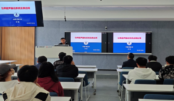 许龙教授结合自己的研究方向从超声技术的简介、功率超声振动系统的组成等方面做报告,介绍了各类超声振动系统的研究进展及其在超声清洗、超声加工、超声焊接、超声手术刀等方面的应用。报告会上,学院师生对报告中感兴趣的内容与专家进行了积极交流讨论。