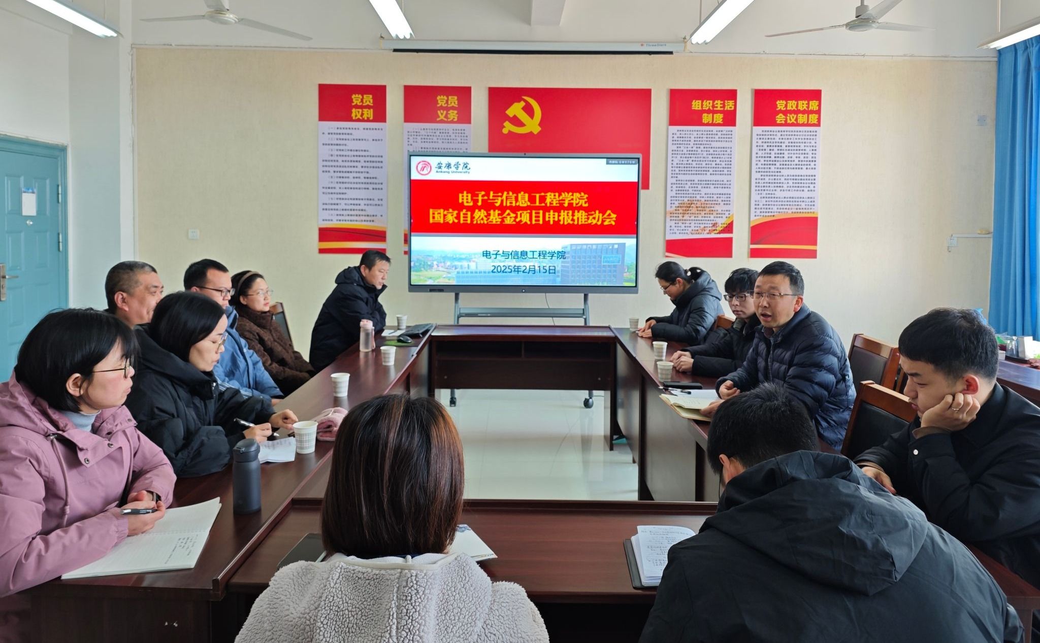 为扎实推进2025年度国家自然科学基金申报工作,全面提升申报书质量,2025年2月15日上午,Beat365中文官方网站召开2025年度国家自然科学基金项目申报第三轮推动会。本次会议聚焦申报材料的终稿优化与专家评审,旨在通过精准指导与团队协作,争取在2025年度国家自然科学基金申报中取得优异成绩。申请国家自然科学基金项目多位博士参加会议,副院长王克刚主持会议。