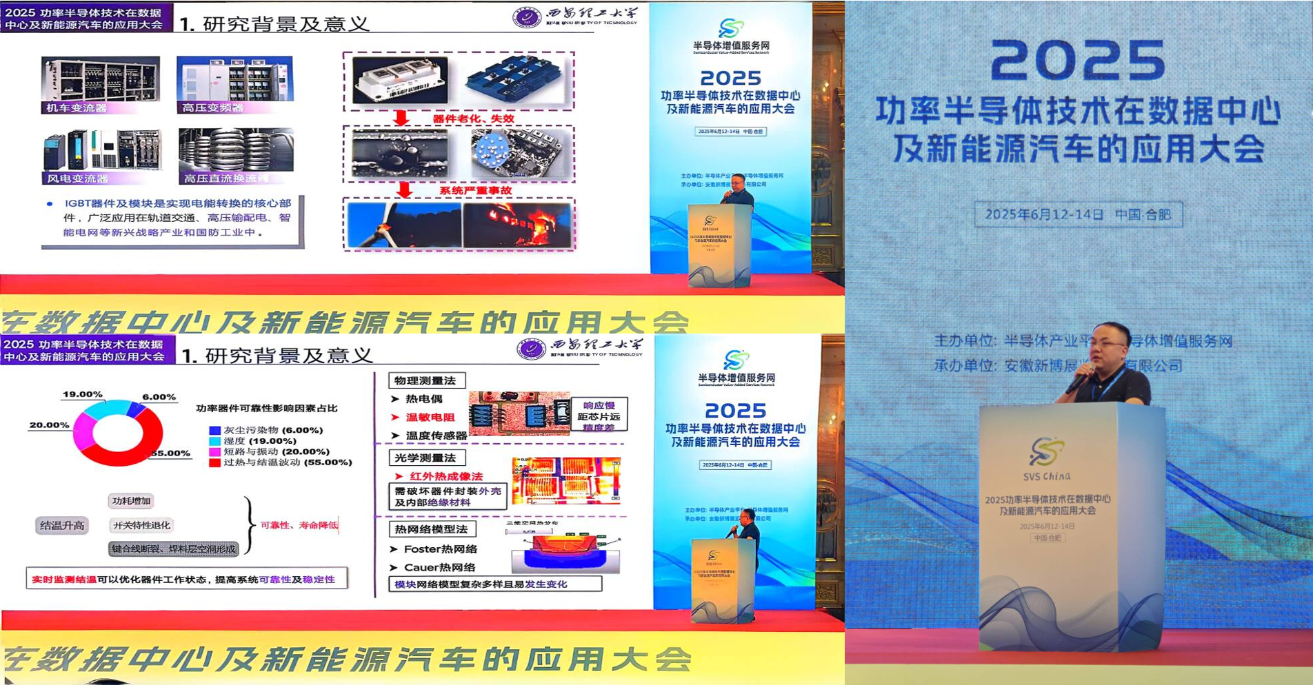 6月12日至14日,“2025功率半导体技术在数据中心及新能源应用大会”在安徽合肥盛大召开。本次大会以“应用引领·融合发展”为核心议题,聚焦功率半导体在数据中心与新能源汽车领域的最新技术进展与应用趋势,围绕前沿科技、产业变革与协同创新展开深入研讨。Beat365中文官方网站在读博士邹圣雷老师应邀出席会议,并作大会邀请报告。