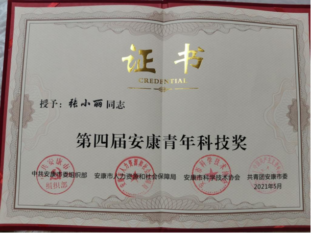 2021年5月28日,安康市2021年“全国科技工作者日”主场活动在市科技馆举行,活动集中展示一线科技工作者风采,表彰优秀科技工作者代表,我院张小丽老师获第四届“安康青年科技奖”。