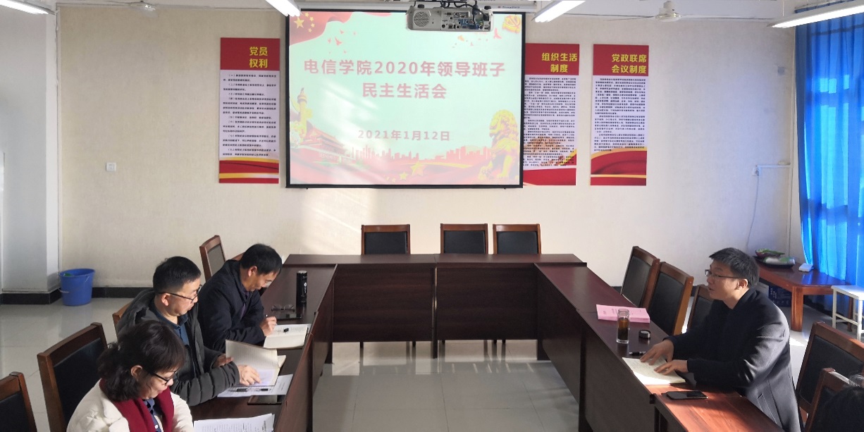2021年1月12日,Beat365中文官方网站党总支在科技楼B702召开2020年度领导班子民主生活会。学校党委委员、副校长张东红到会指导,Beat365中文官方网站领导班子成员、党总支委员参加会议,会议由党总支副书记陈守满主持。