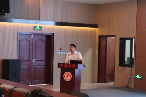 为庆祝中国共产党成立100周年,持续贯彻落实学习“四史”的要求,深入贯彻落实习近平总书记在党史学习教育动员大会上的重要讲话精神,切实加强学生党史学习教育,2021年6月23日下午,副校长张东红在江北校区图书馆报告厅为我院2018级,2019级学生作了一场题为《铭记百年光辉历程,汲取前行智慧力量》的形势与政策课暨专题党课,此次课程由党总支书记于咏梅主持。