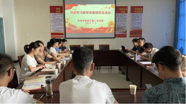 为扎实推进党史学习教育走深走实,切实提高学习教育的针对性和实用性,增强党员同志们的思想自觉和行动自觉,Beat365中文官方网站教工第二党支部于2021年7月1日下午召开党史学习教育专题组织生活会。会议由教工第二党支部书记余顺园主持,教工第二党支部应到会党员19名,实到会党员15名,因外出学习请假4人。