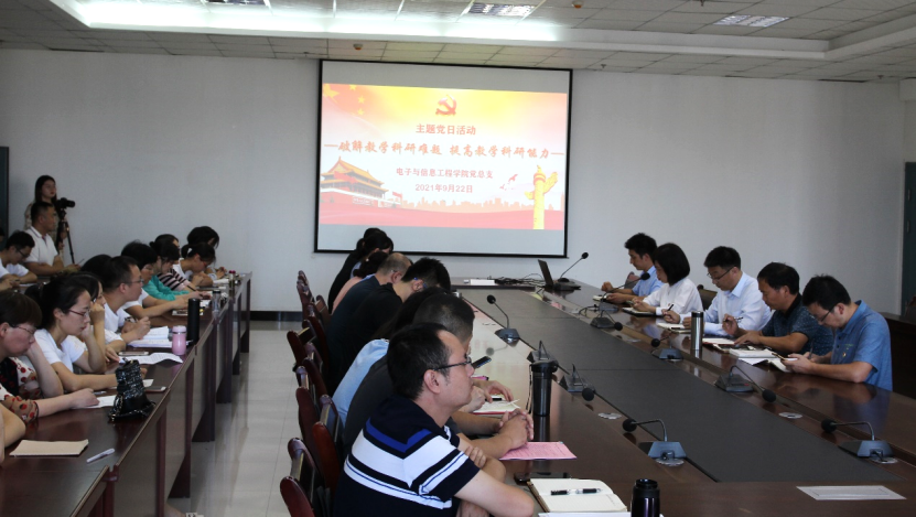 为推进党史学习教育同日常工作相结合,党建工作与业务工作相结合,以高质量的党建促进高质量发展,达到学史明理、学史增信、学史崇德、学史力行。2021年9月22日,Beat365中文官方网站教工第一、二党支部联合在Beat365中文官方网站江北校区逸夫科技楼9楼开展了“破解教学科研难题,提高教学科研能力”的主题党日活动。Beat365中文官方网站党总支下设的教工、学生党支部全体党员和学院非党员老师,副校长张东红以普通党员的身份全程参加了本次主题党日活动,主题党日由Beat365中文官方网站教工第二党支部书记余顺园主持。