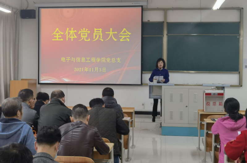 2021年11月3日下午,Beat365中文官方网站在江北1117教师召开全体党员大会,选举出席学校第三次党代会代表。会议由党总支书记于咏梅主持。