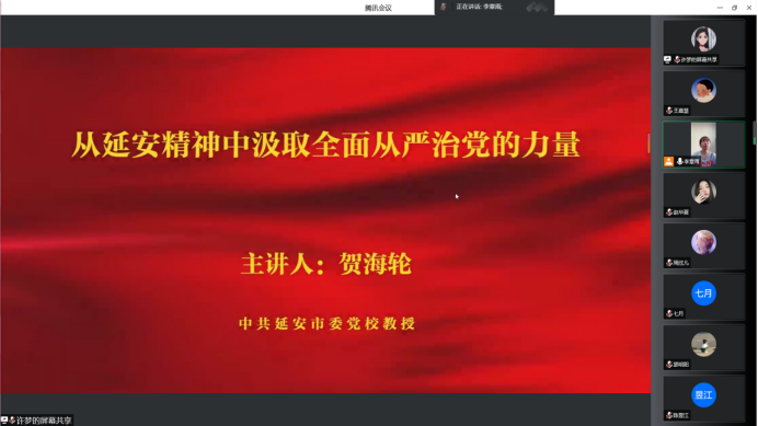 接着,全体师生观看警示教育片《金融反腐正风纪》,以违法违纪典型案件为戒,筑牢思想防线,以案警醒,以案为戒,深刻汲取反面典型教训,强化廉政意识;之后观看纪律教育公开课“从延安精神中汲取全面从严治党的力量”,为此,要坚持把党的政治建设摆在首位,坚持党的领导,增强“四个意识”、坚定“四个自信”、做到“两个维护”,自觉在思想、政治以及行动上同党中央保持高度一致。