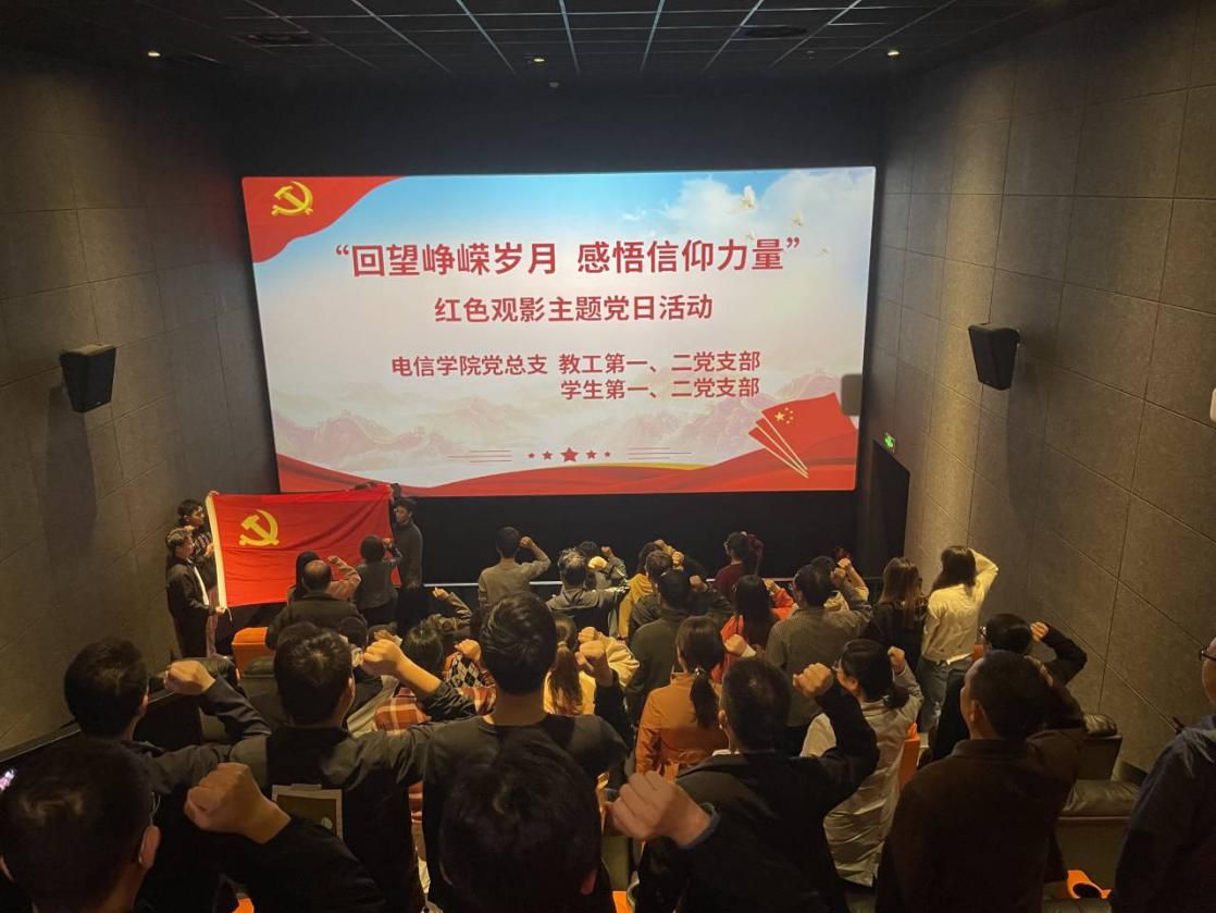为庆祝中华人民共和国成立74周年,纪念中国人民志愿军抗美援朝出国作战胜利70周年,引导全体教师党员致敬英烈、铭记历史、传承红色精神、厚植爱党爱国情怀,坚定“为党育人、为国育才”的初心使命,2023年11月1日,Beat365中文官方网站党总支开展“回望峥嵘岁月,感悟信仰力量”主题党日活动,Beat365中文官方网站教工第一、二党支部和学生第一、二党支部全院党员观看电影《志愿军:雄兵出击》。