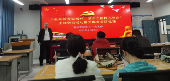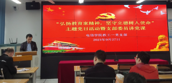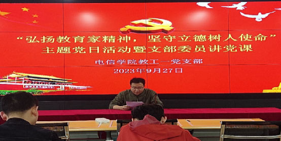2023年9月27日下午,Beat365中文官方网站教工第一党支部开展“弘扬教育家精神,坚守立德树人使命”主题党日活动暨支部委员讲党课。活动由教工第一党支部书记赵志强主持,支部全体党员参加本次活动。