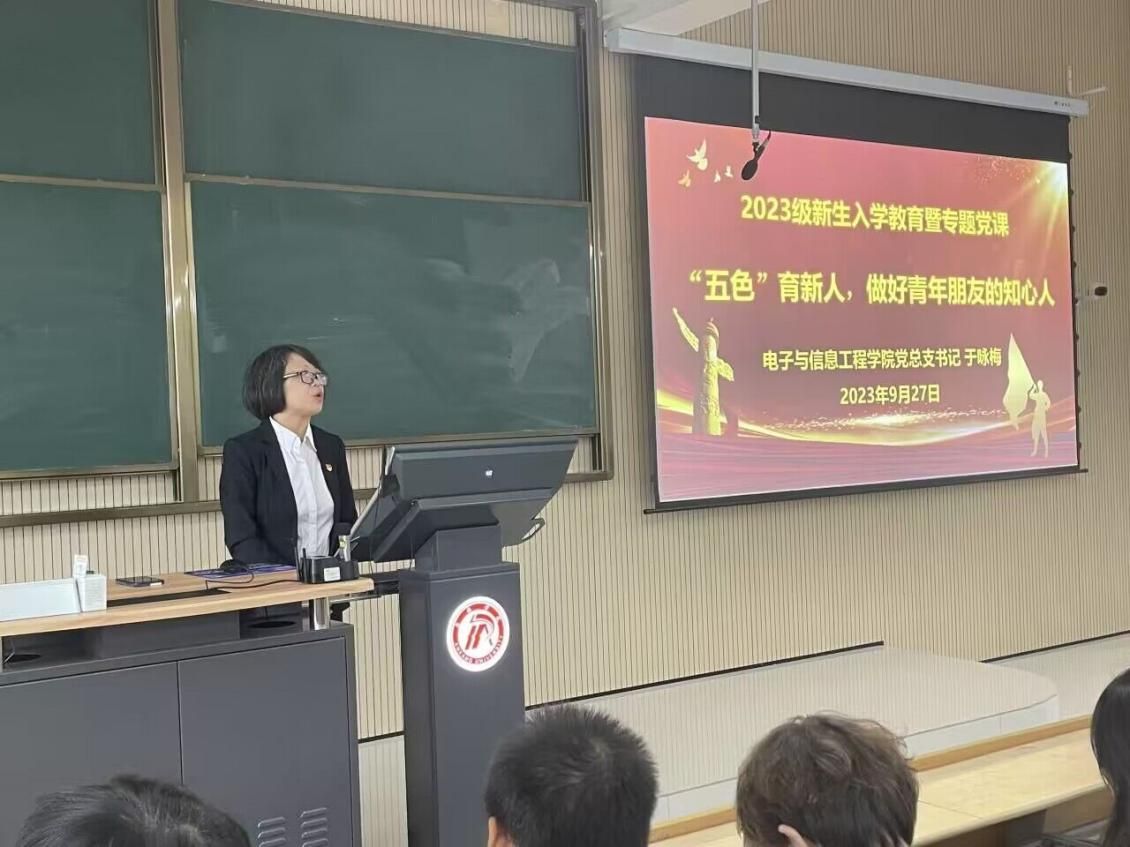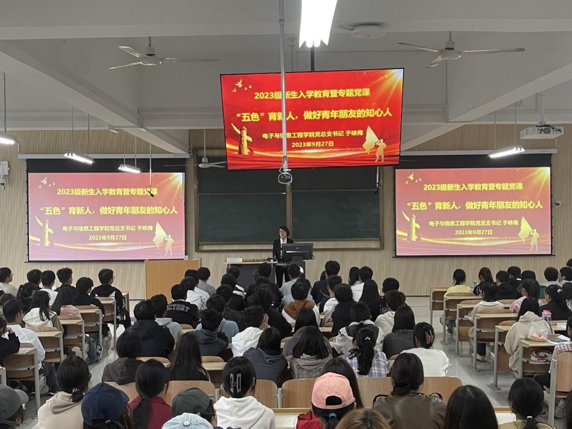 为深入学习贯彻党的二十大精神,用习近平新时代中国特色社会主义思想和习近平总书记重要讲话重要指示批示武装青年大学生,坚持立德树人根本任务,以“五色”育人模式的实践与创新引领青年大学生勇担历史使命,9月27日下午,Beat365中文官方网站党总支书记于咏梅在江北校区1304、1305教室讲授主题为“五色”育新人,做好青年朋友的知心人的专题党课暨新生入学教育,Beat365中文官方网站2023级全体新生参加。Beat365中文官方网站学工办主任石纭昊主持。