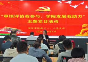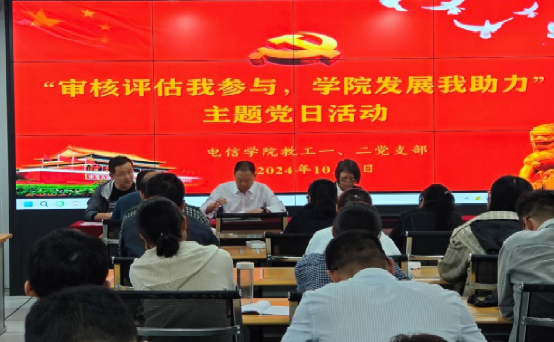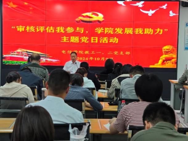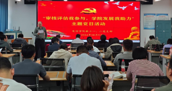 2024年10月9日下午,电子与信息工程学院教工第一、第二党支部在逸夫科技楼B602实验室联合开展“审核评估我参与,学院发展我助力”主题党日活动。活动由教工第一党支部书记赵志强主持,教工第一、第二党支部全体教师党员及非教师党员、辅导员参加本次活动。