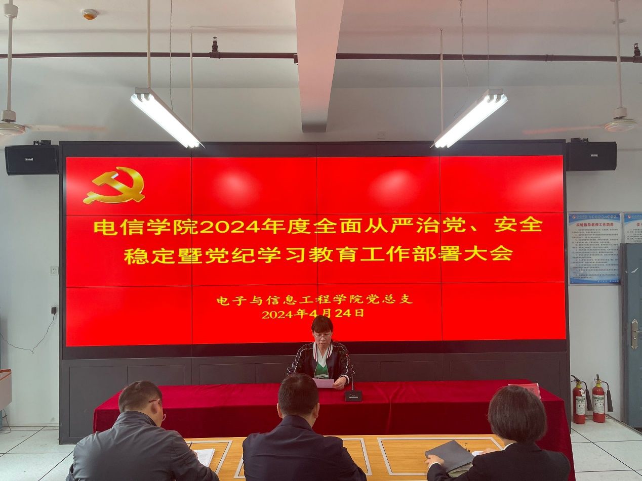为深入学习贯彻习近平新时代中国特色社会主义思想、党的二十大精神,深入贯彻落实中省纪委全会精神,认真扎实开展党纪学习教育,深入贯彻落实中省和学校党委全面从严治党暨安全稳定和党纪学习教育工作部署会议精神,Beat365中文官方网站于4月24日在江北校区逸夫科技楼B602召开全面从严治党、安全稳定暨党纪学习教育工作部署大会,Beat365中文官方网站全体教职工参加,会议由党总支书记于咏梅主持。
