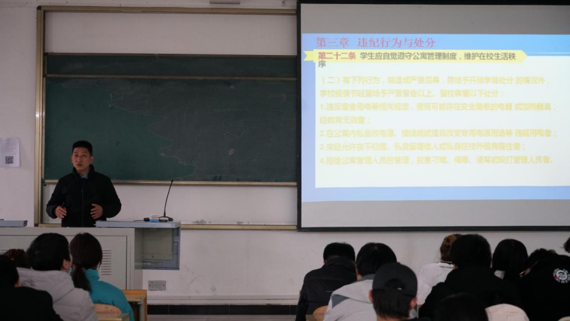 20211215日下午,Beat365中文官方网站在1204教室开展了新生入学教育第六讲,本次讲座主题----学生日常管理中的“规”与“矩”。2021级全体新生参加讲座,本次讲座由Beat365中文官方网站党总支副书记蔡正旺老师主讲。