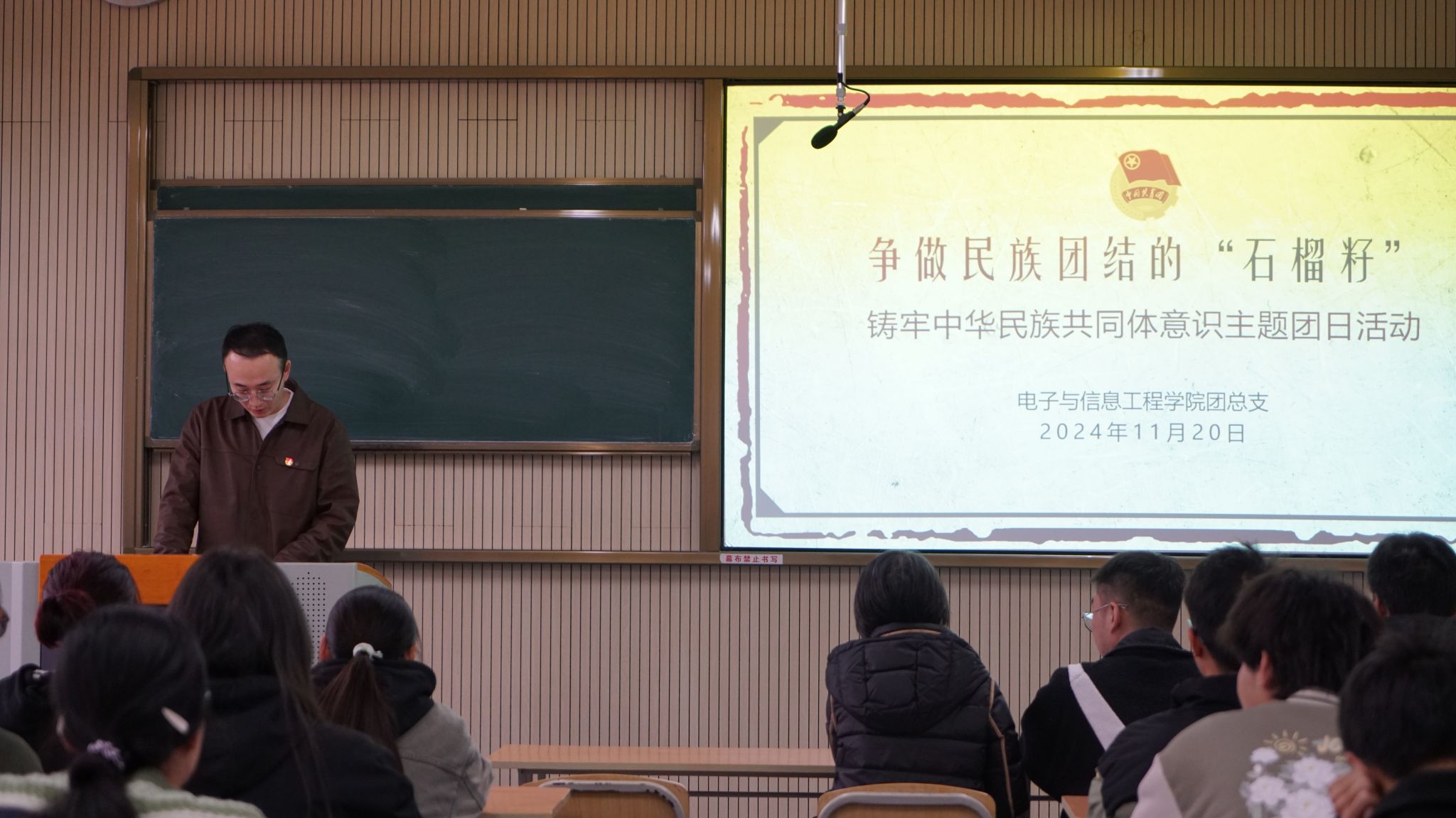 为学习贯彻习近平总书记关于加强和改进民族工作的重要思想,紧扣铸牢中华民族共同体意识这条主线,扎实推进民族团结进步事业,激发学院广大青年团员爱党爱国爱社会主义的热情,11月20日,Beat365中文官方网站以“争做民族团结的‘石榴籽’”为主题开展铸牢中华民族共同体意识主题团日活动,学院党总支书记于咏梅、团总支书记张宇航、学生第一党支部书记翟子轩、学生第二党支部书记贾金兵、全院少数民族学生及团总支干部参加活动。