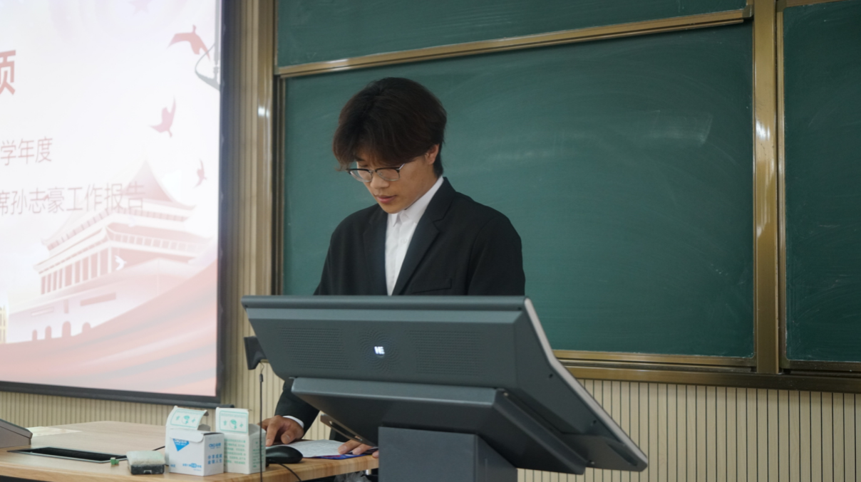 会议最后,团总支书记张宇航做大会总结,他对上一届团学组织的工作成果给予了高度评价。他强调团学组织要始终以服务同学为核心,希望新一届负责人保持进取精神,加强协作创新,同时要在工作中保持热情与责任心,勇往直前,既要做好学院与同学间的沟通桥梁,也要在实践中提升自我,以踏实的行动开创工作新局面。