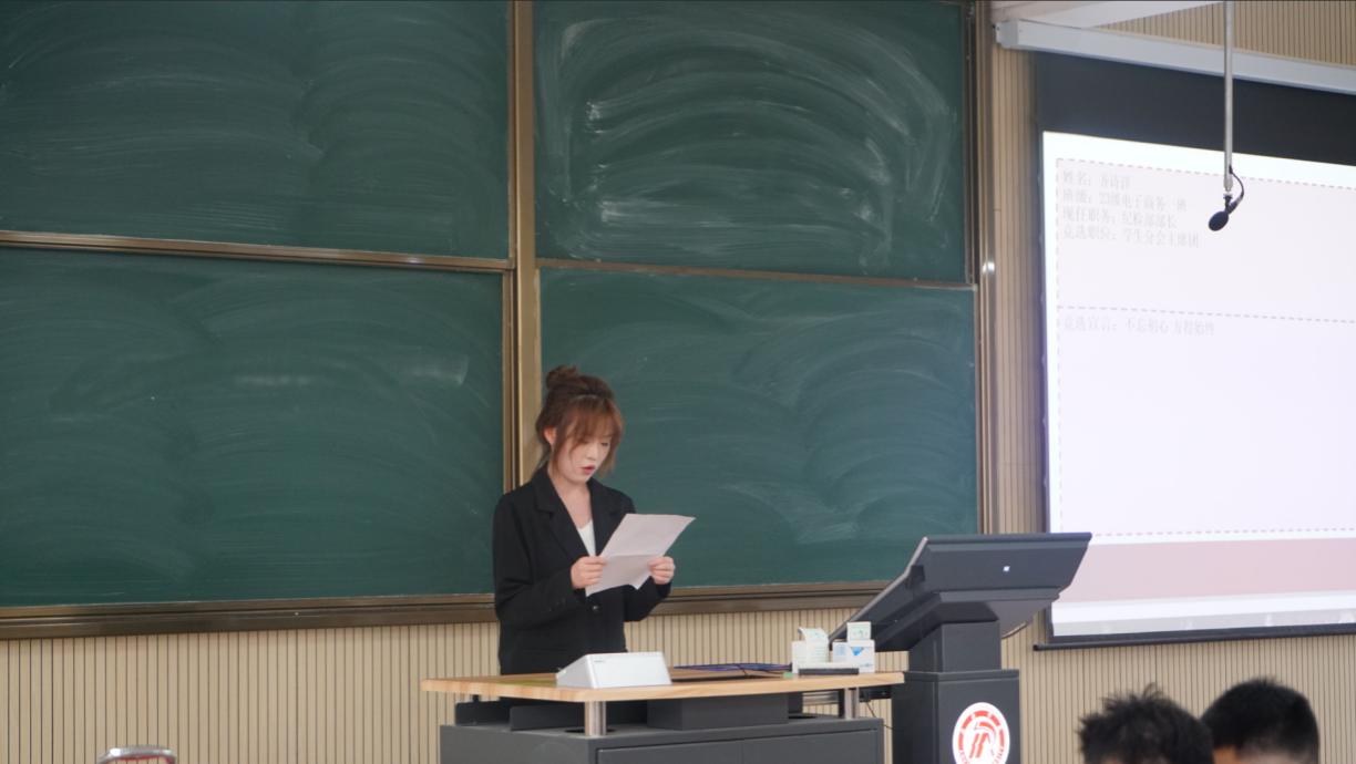 竞选演讲结束后进入投票环节。现场发放印有候选人名单的选票,在场的班委为自己心中的“领导者”投下了神圣的一票。随后,团总支副书记、学生会主席、社团服务中心负责人分别汇总了各部门的票数。经过严谨统计,最终确定了新一届团学组织骨干名单,此次选举工作严格规范选举程序,切实做到选举公平公正。