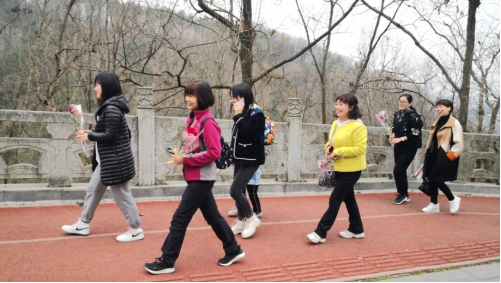 9点30分,徒步行活动正式开始。迎着和煦的春风,踏着欢快的脚步,老师们个个精神抖擞,共同享受着踏青的快乐;一路上说笑声、赞叹声与美景遥相呼应,让大家忘记了工作的疲惫。老师们你追我赶,奋勇向前,或踏青赏景,放松心情;或三五成群,登高远眺;或欢声笑语,合影留念。大家沿着蜿蜒的山路,呼吸着山间的清新空气,享受着大自然的秀丽风光。
