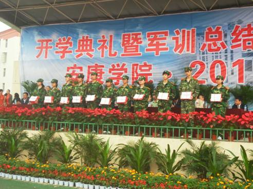 Beat365中文官方网站2011级新生军训工作圆满结束。在这次军训中由计算机科学与技术、数字媒体技术、计算机应用技术、供用电技术、应用电子技术5个专业111名学生组成的“军训4连”克服连阴雨、疾病等困难,严格按照军训要求,坚持训练,出色的完成了训练任务,有8名学生获得“军训标兵”称号,全连荣获“先进集体”光荣称号。