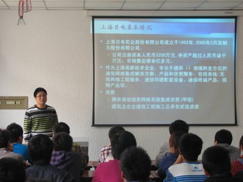 樵主任介绍,上海贝电公司是一所从事通信与网络产品研发、生产的高科技公司,业务分布十余个国家,在国内五十多个城市设有办事处;贝电重视对职工的培养,实习生就作为正式职工对技术和能力进行不断地培养,在培训的过程中不定期进行现场测试以保证学习效果。樵主任谈到,在贝电积累的工作经历,不仅对专业学习有帮助,而且能够提高自身的能力。此次招聘的职位包括网络优化工程师和网络工程师,招聘人数15-20名。
