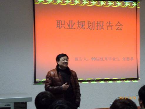 为了提高学生对专业的认识,树立正确的就业观、学习观,营造良好的学习风气,315,系学办、计算机应用教研室邀请99届计算机科学与技术专业优秀毕业生、深圳市大真条码技术有限公司项目经理张恕孝做了题为“大学生就业指导”报告会,计算机应用教研室主任刘宏、学办主任石纭昊、辅导员王贵新及计算机本专科50余名学生参加了报告会。