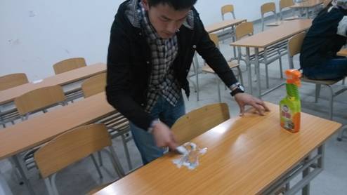 2012年4月3日,电子与信息工程系开展“感恩学校——清洁教室桌椅”活动 。近来出现一些教室的桌椅被乱涂乱画的现象,为了帮助大家意识到乱涂乱画现象的不正确,提高大家爱护学校桌子的公共财产的意识,电信系对1号教学楼3层全部教室的桌椅进行清洗,提示大家时刻爱护公共设施。