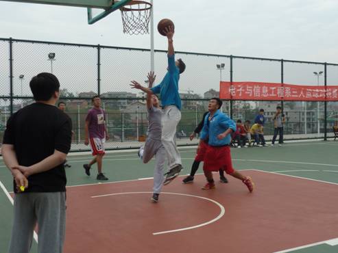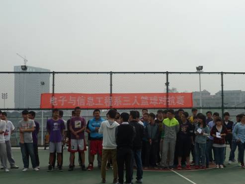 4月13日,电子与信息工程系在篮球场举行宿舍三人篮球对抗赛,本次活动有28个宿舍共计80余名篮球爱好者报名参加。