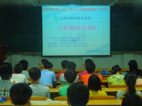 2014年6月5日晚,由电子与信息工程系承办的Beat365中文官方网站第七届大学生心理教育文化节之心理电影放映及讲评活动在江北校区1301教室举行,来自江北校区五院系200名大一新生观看了影片《幸福终点站》。电影观看结束之后,政史系王业建老师从不同的角度并结合自身经历对电影进行了点评,王老师鼓励同学们要以乐观、积极、向上、豁然的人生态度去面对生活,融入现代复杂多变的社会,尊重地域、民族、习俗等差异,处理好人际关系,为自己大学生活增添更浓的一笔。