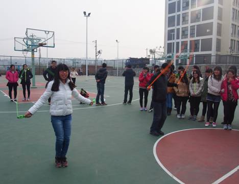 本次联谊活动分为两大内容,分别是集体项目和个人项目,共有两个代表队,分别是教师代表队和学生代表队。开场的拔河比赛,使运动会气氛变得热烈非凡,双方队员个个精神抖擞、斗志昂扬,充分展示了力争上游的精神风貌,现场拉拉队的呐喊更是此起彼伏,让赛场气氛顿时沸腾起来。接着,呼啦圈、跳绳、踢毽子、象棋和定点投篮、多项目接力等比赛同时进行,师生共同参与使比赛场面异常活跃,运动场上处处充满了欢声笑语。