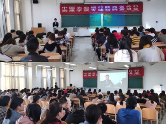 中国农业银行陕西分行的本次招聘主要面向2020届本科及以上毕业生,提供就业岗位500个。人力资源部老师首先用播放宣传视频的形式让在场的同学对中国农业银行安康支行有了大概的了解,其后,人力资源部老师对大家关心的薪资结构、工作环境等重要问题做了着重讲解。最后,就本次招聘的岗位要求及流程做了简要的介绍。