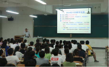 王庆春副院长向同学们介绍了关于“2016级大四教学工作安排”和“顺利毕业的注意事项”,分别说明了电信学院各个专业大四时开设的课程、毕业时需要满足的条件、需要修够的学分、并为各专业同学推荐了认定的培训机构,给即将步入大四的同学们指明了努力的方向,希望同学们能够顺利毕业,完成学业。